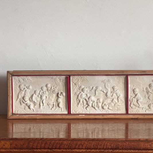 A Late 19th Century Framed Trio of Plaster Relief Plaques by Elkington & Co.