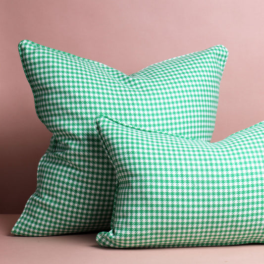 Large Houndstooth Lambswool Cushion - Green