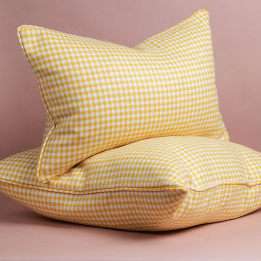 Houndstooth Lambswool Cushion - Gold