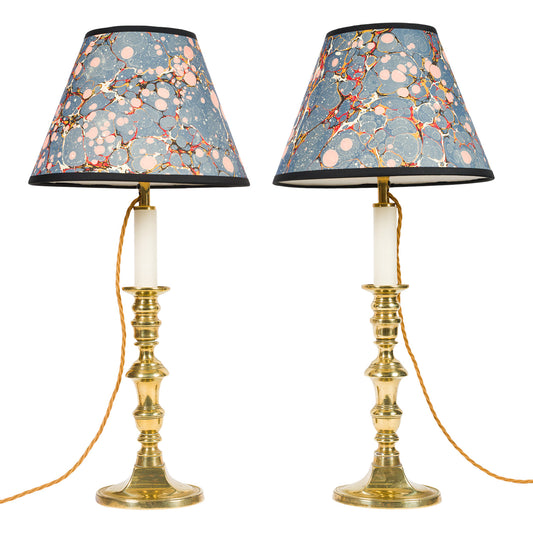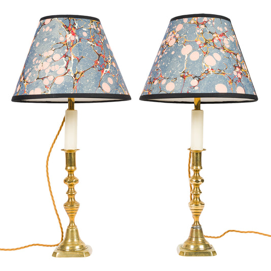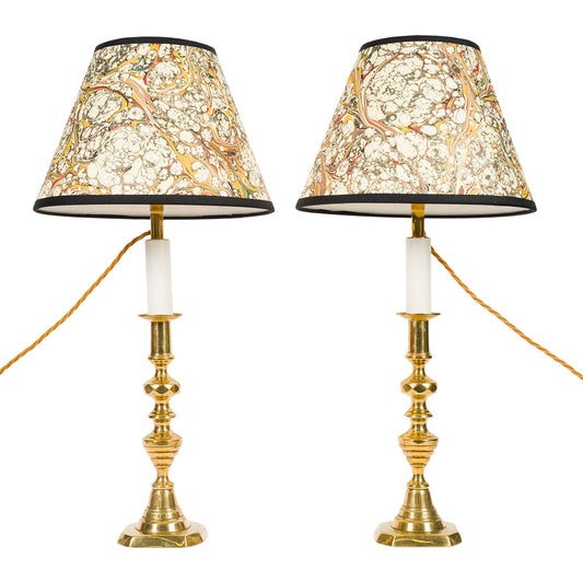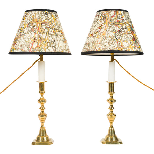 Pair Antique Tapering Brass Candlestick Lamps