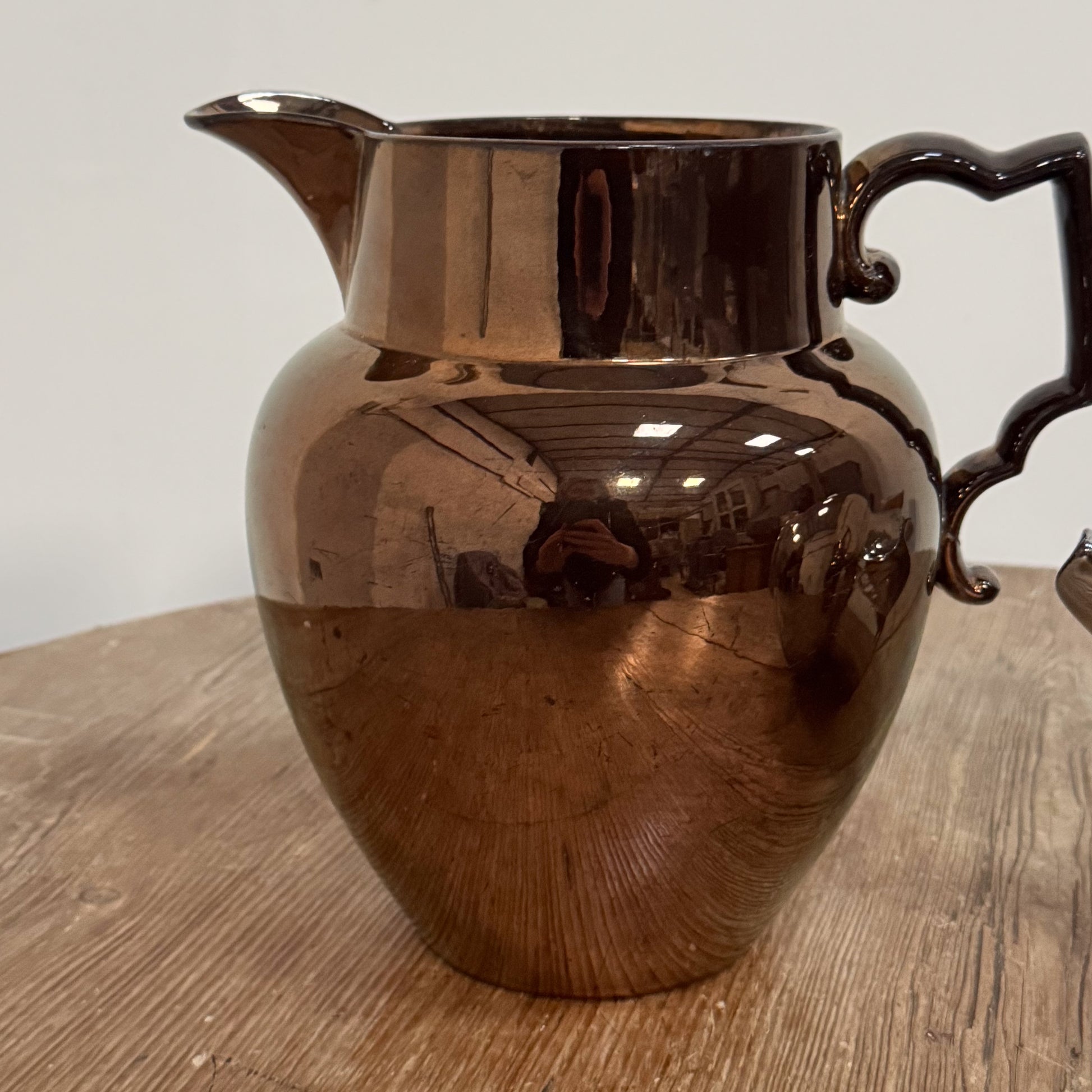 The large one being glazed in a copper colour lustreware, and the smaller a silver colour lustreware.