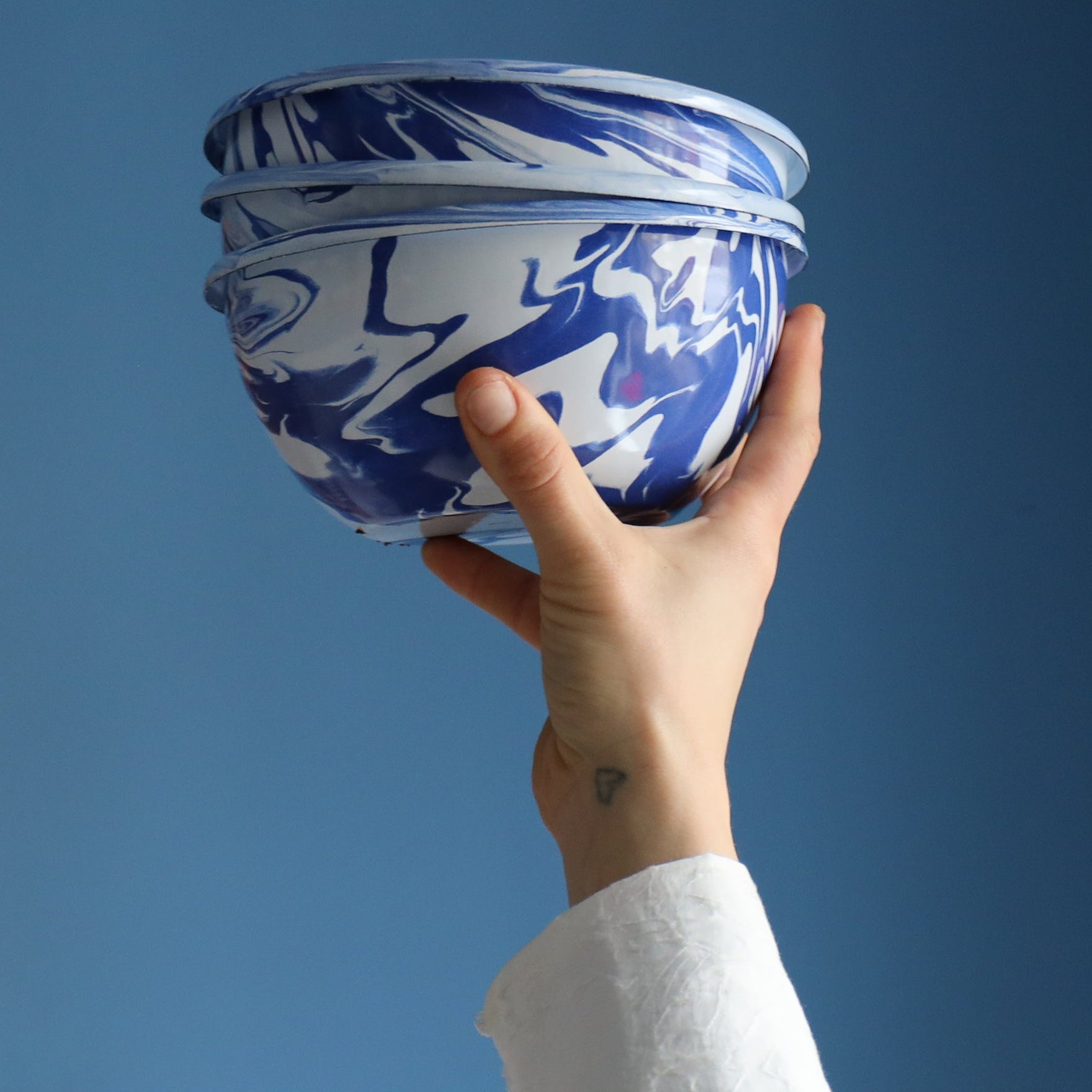 Hand Marbled 16 Piece Enamelware Dining Set - Blue