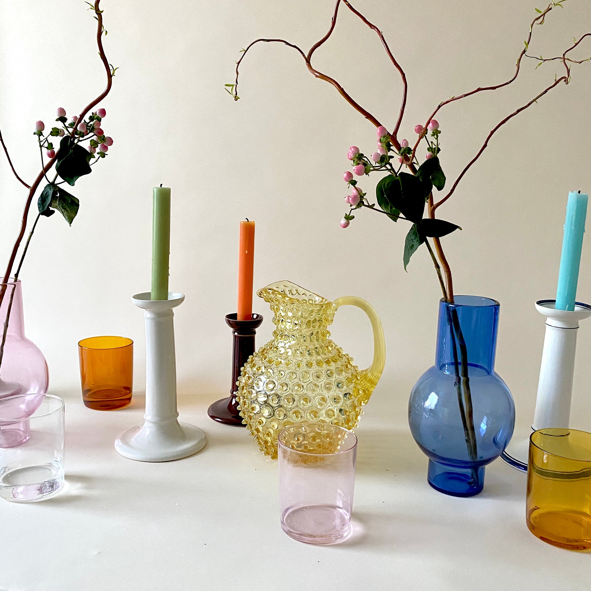 Each tumbler is individually mouth blown in borosilicate glass. Each cup is heat resistant and dishwasher safe*. They are available in a range of colours and add extraordinary pleasure to the simple act of drinking water.