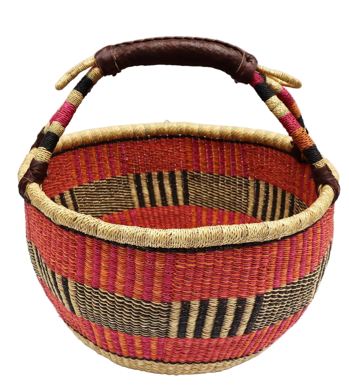 Large Round Bolga Basket - Red/Orange