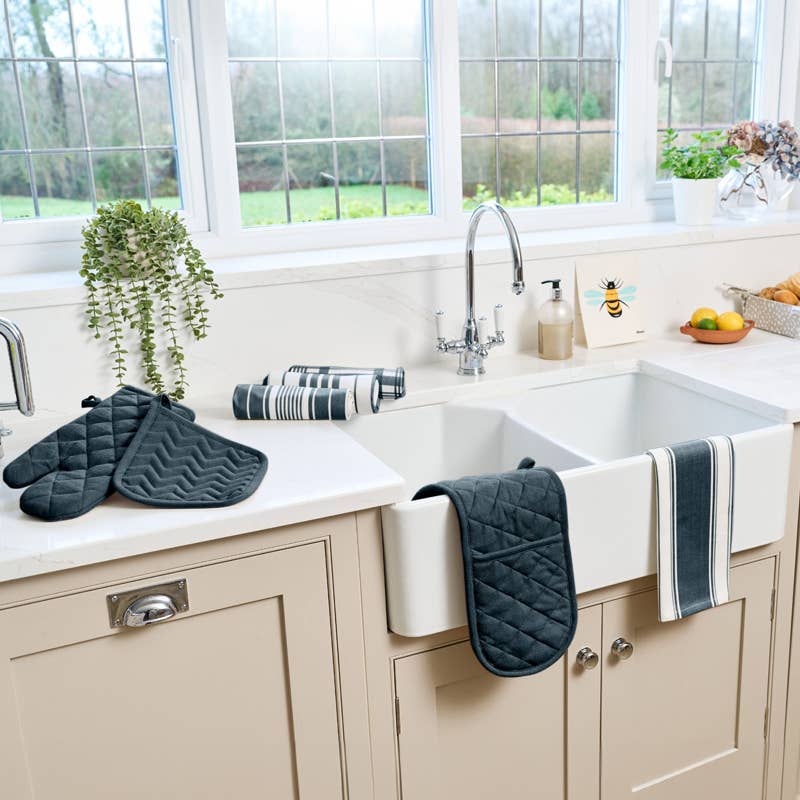 Made from the finest 100% cotton, this tea towel is ideal for drying up and helping in the kitchen. With a hanging loop included for safe hanging.