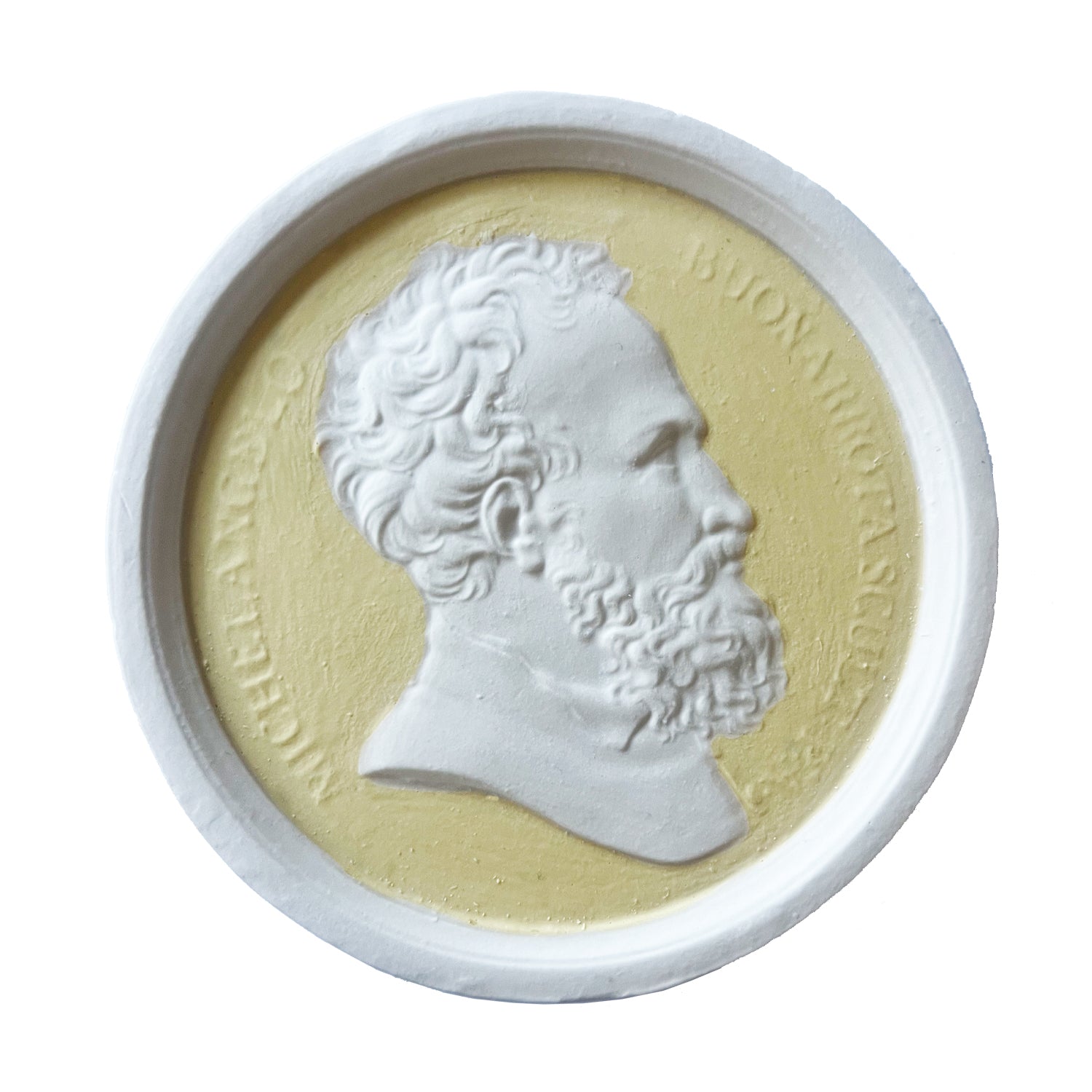 Italian sculptor, painter, architect and poet Michelangelo (1475 - 1564) Portrait Plaque in Pale Yellow/White