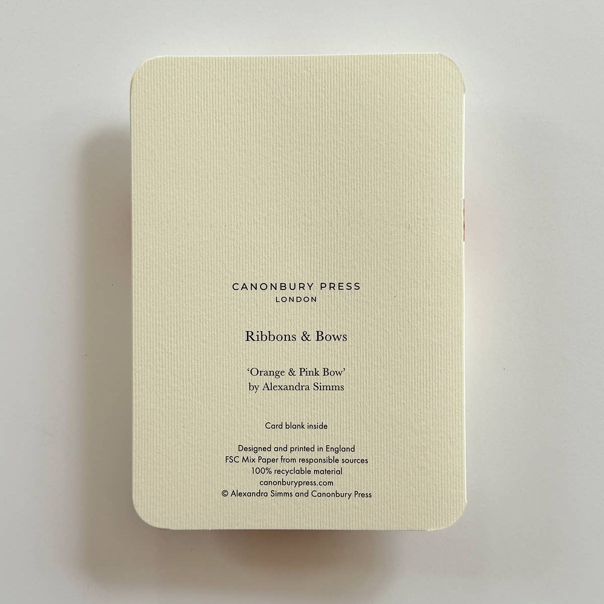 An elegant still life card featuring a hand-tied ribbon, styled and photographed by Alexandra Simms.