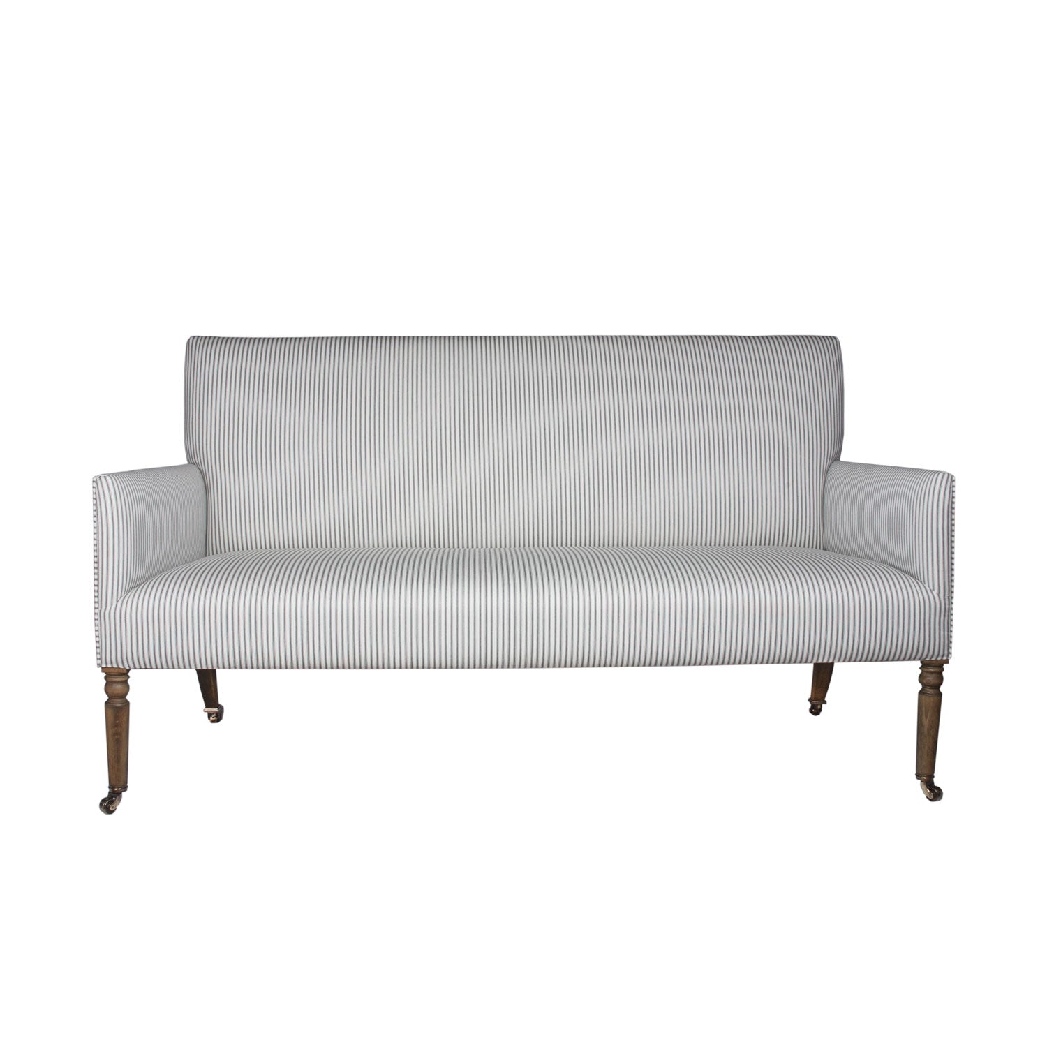 Introducing the P&H Bloomsbury sofa. Based on a Georgian box sofa of good proportions with thin padded arms and a deep seat joining turned tapered legs ending in casters. While generous in seat area it’s overall size makes it perfect for the end of the bed or corner of the study, along a hallway or popped quielty into the kitchen.