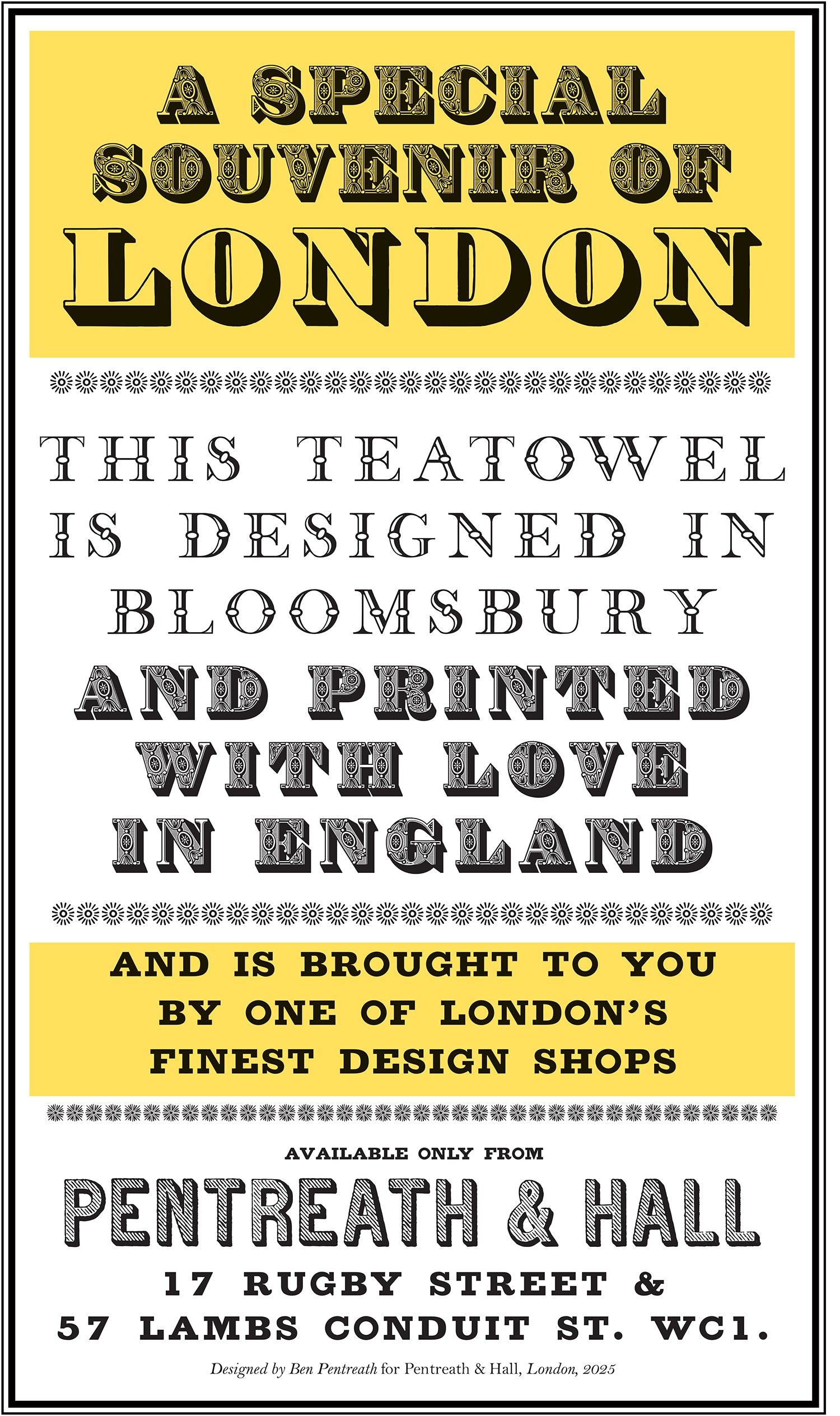 We like the idea of merchandise and love those t-shirts people used to get saying something along the lines of 'My Aunty went to Maui and all she bought me back was this lousy t-shirt' and the iconic I Heart NYC logo. So we've made our own, but make it useful and dedicated to typography because Ben loves typography and has designed this for Pentreath & Hall just for you.