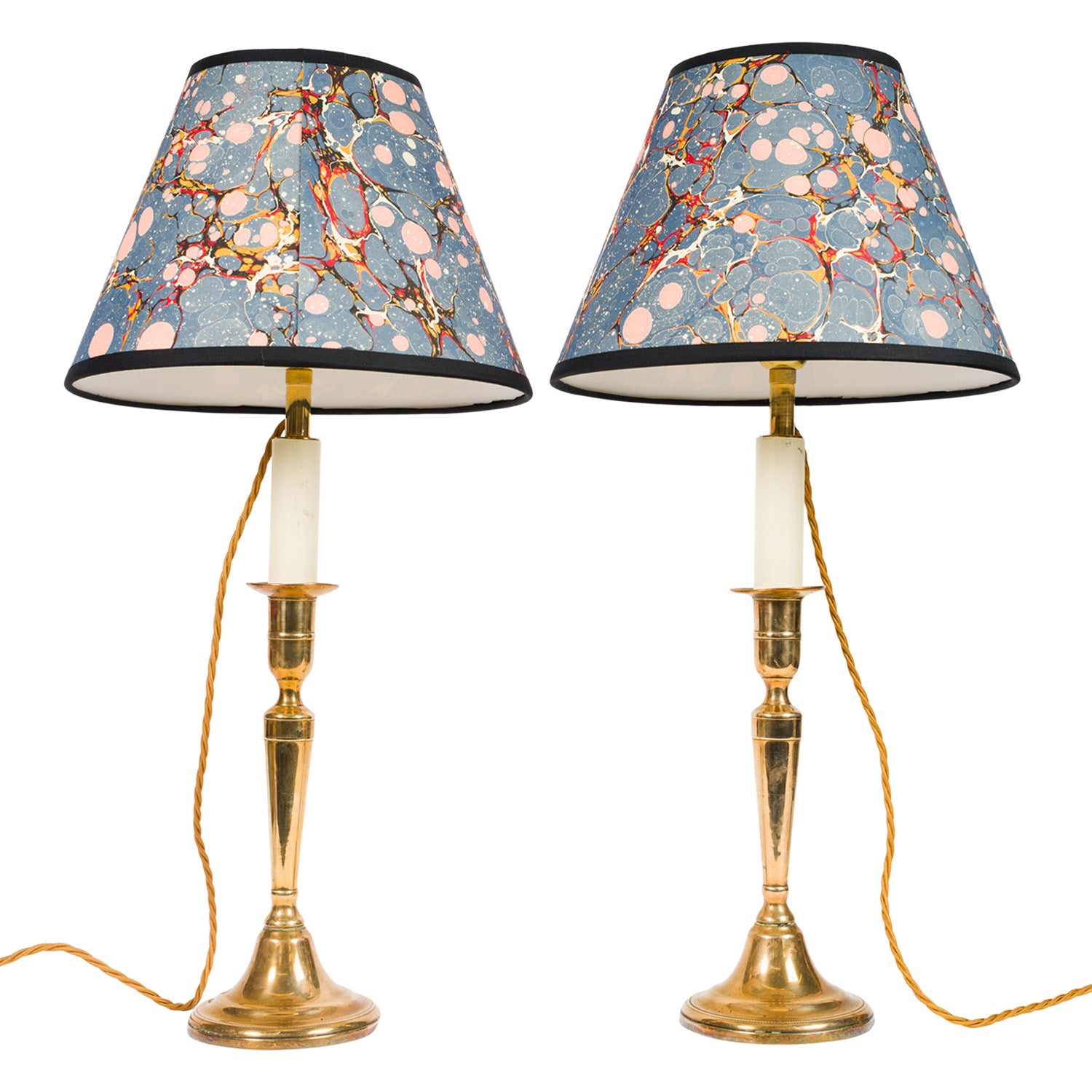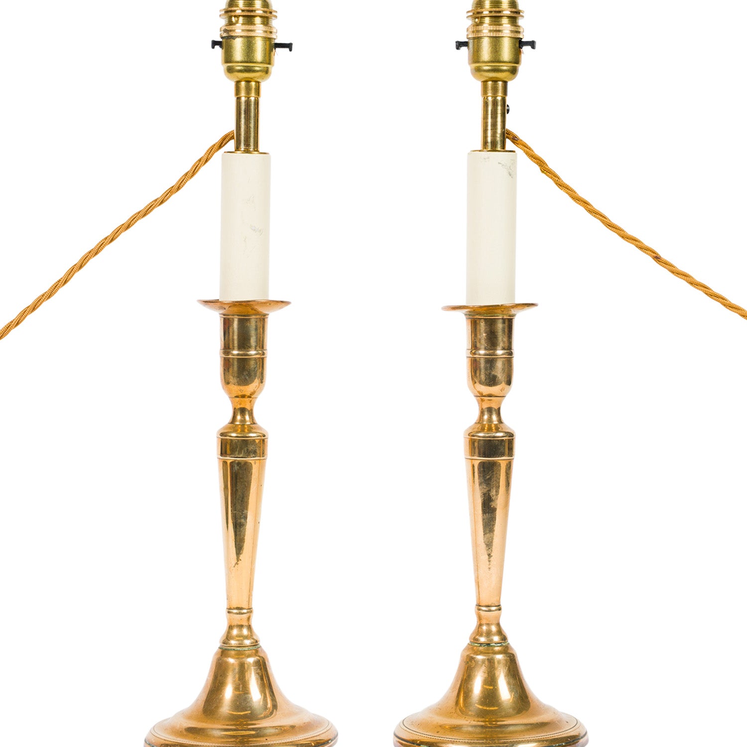 Pair Antique Tapering Brass Candlestick Lamps