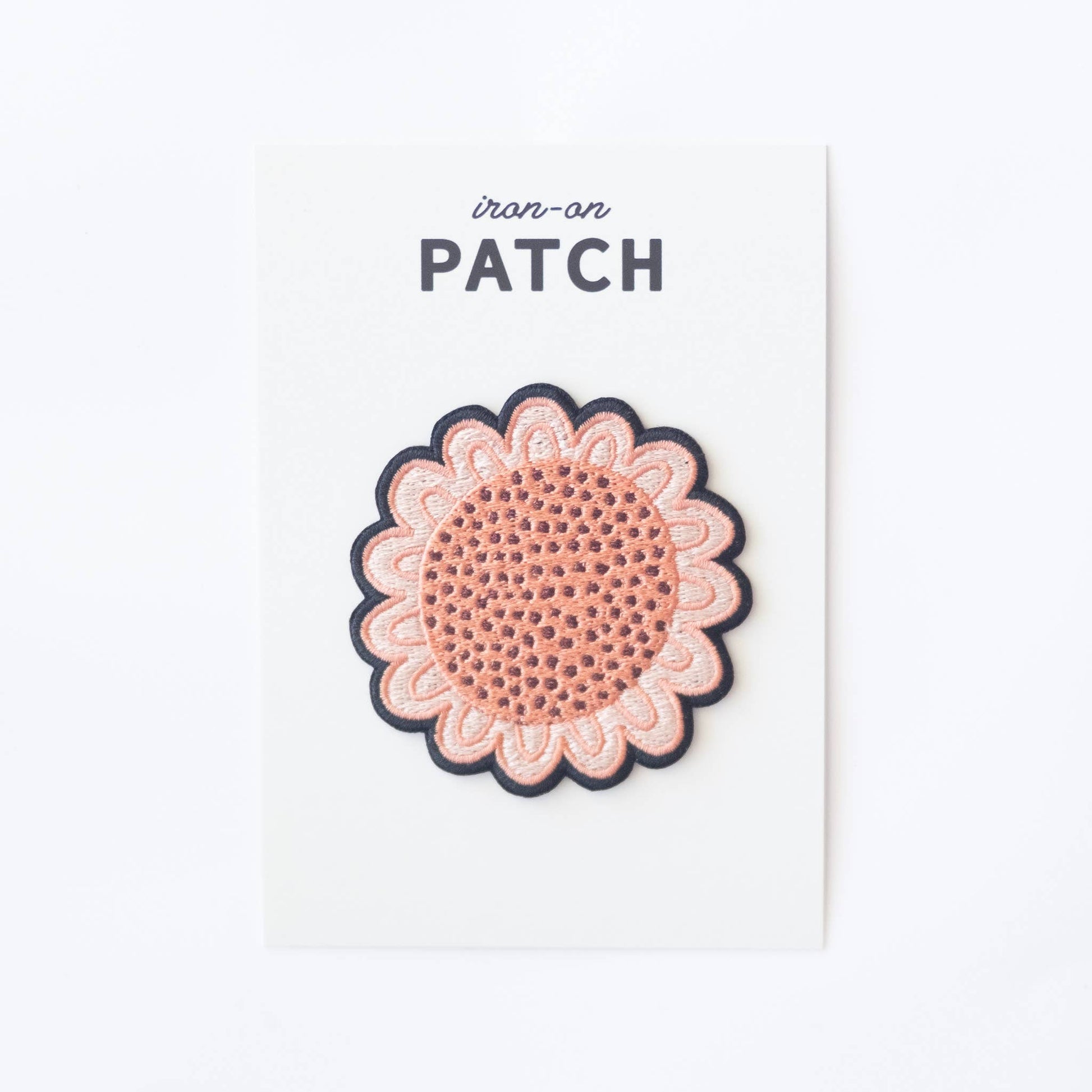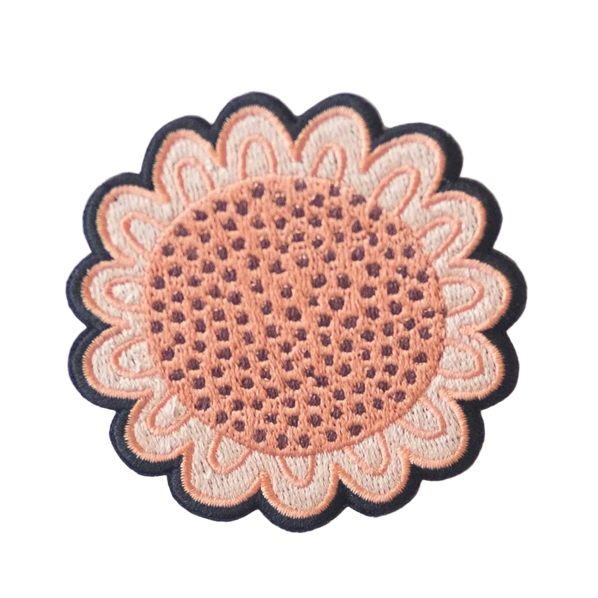 Embroidered Pink Wildflower iron-on patch. A charming 6.25cm/2.5" round embroidered design that brings a touch of nature’s beauty to any outfit.