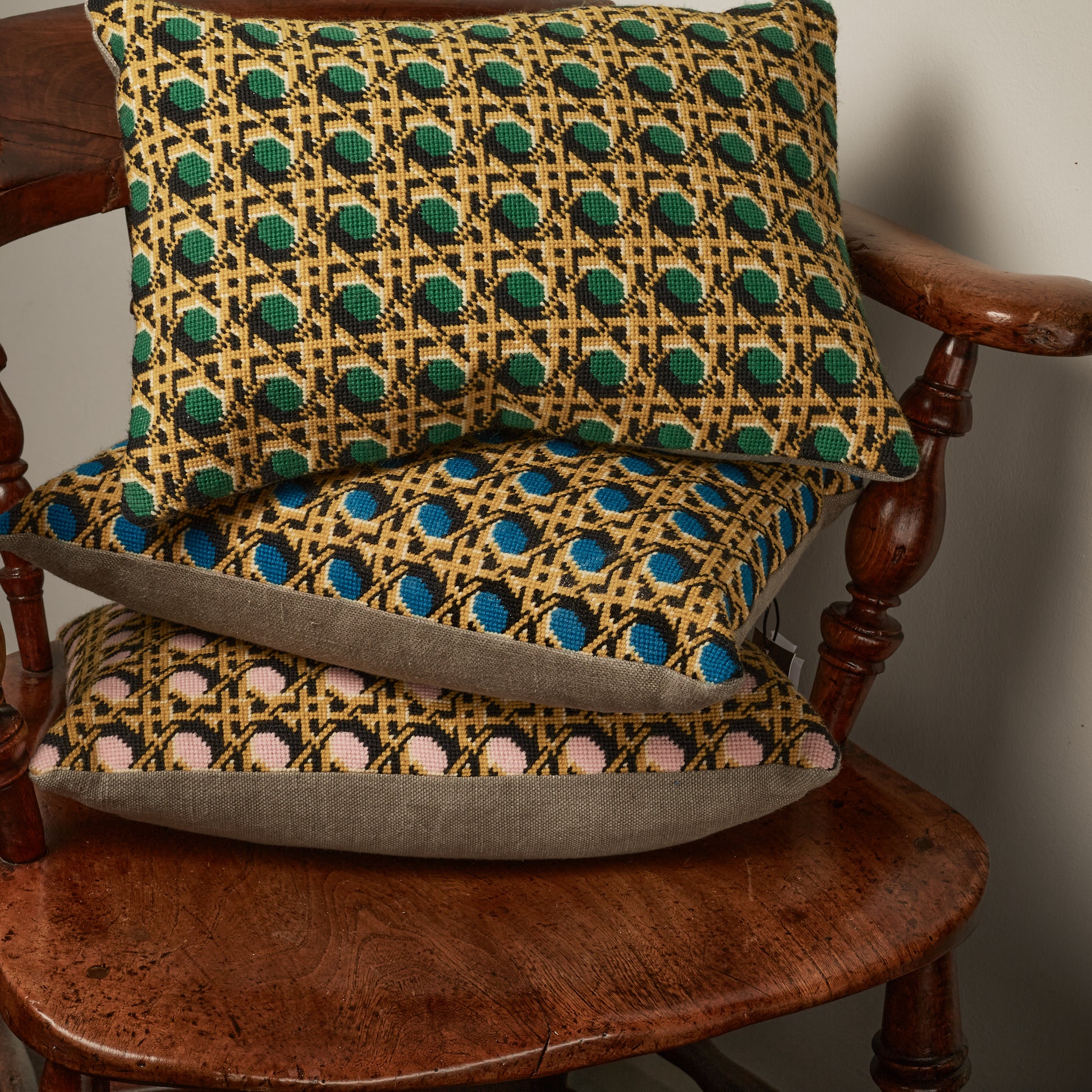 Pentreath & Hall in collaboration with Fine Cell Work, a social enterprise close to our hearts have once again realised ‘Regency Caning’ as needlepoint cushions as only they can.