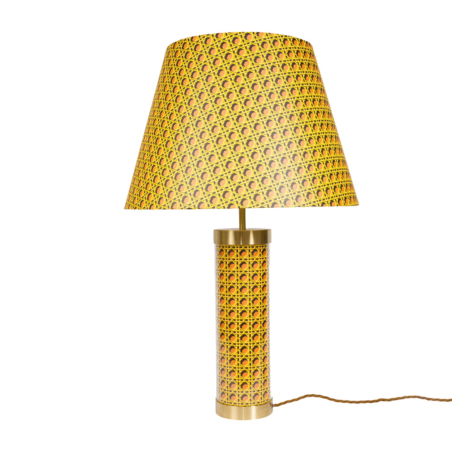 Completing the look is the regency caning lampshade measuring, top diameter 25cm, height 28cm, base diameter 40cm.