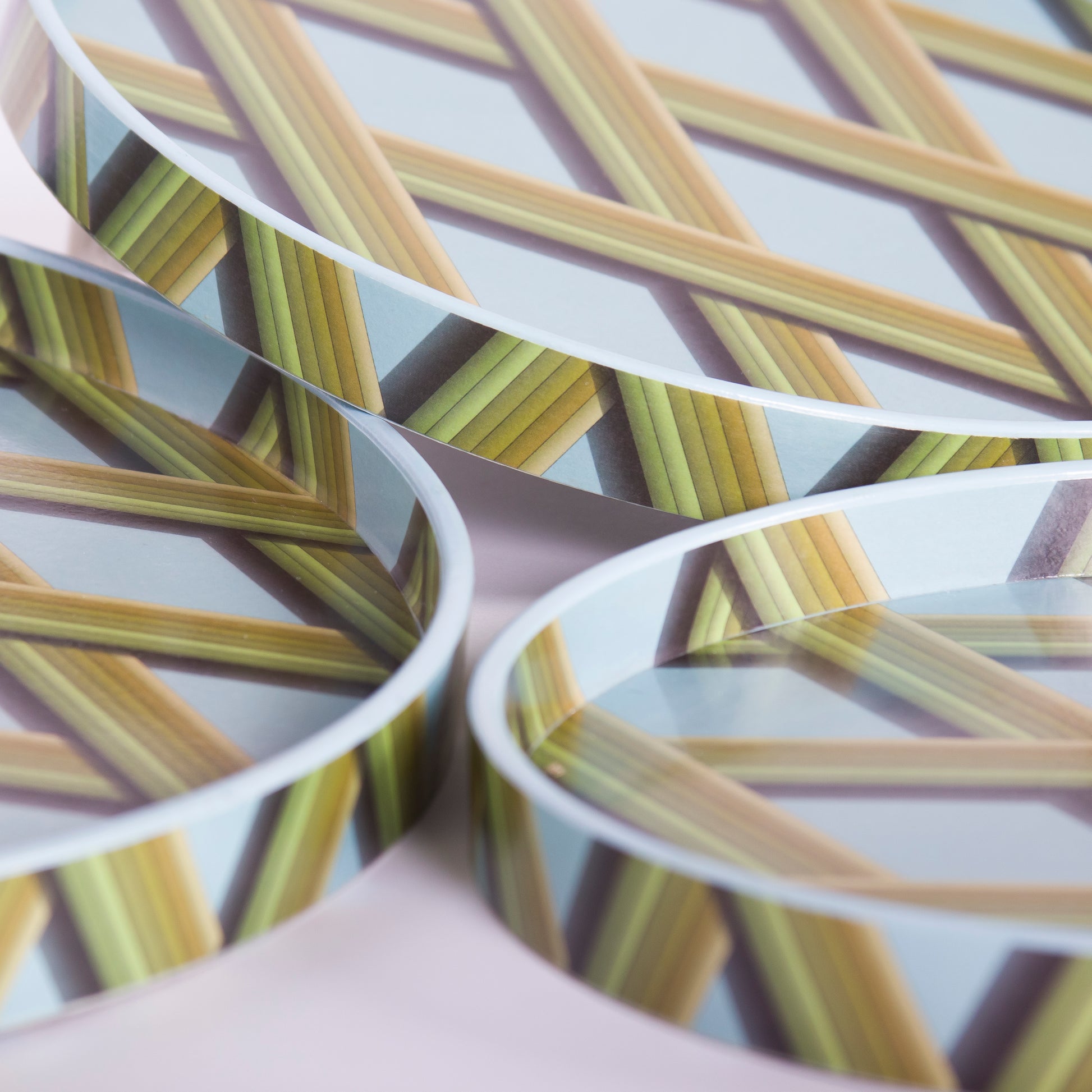 Bridie Hall's latest patterned trays bring together a brilliant fusion of contemporary aesthetics and timeless charm. With practiced designs and an imaginative use of colour, these trays effortlessly elevate any space they grace.