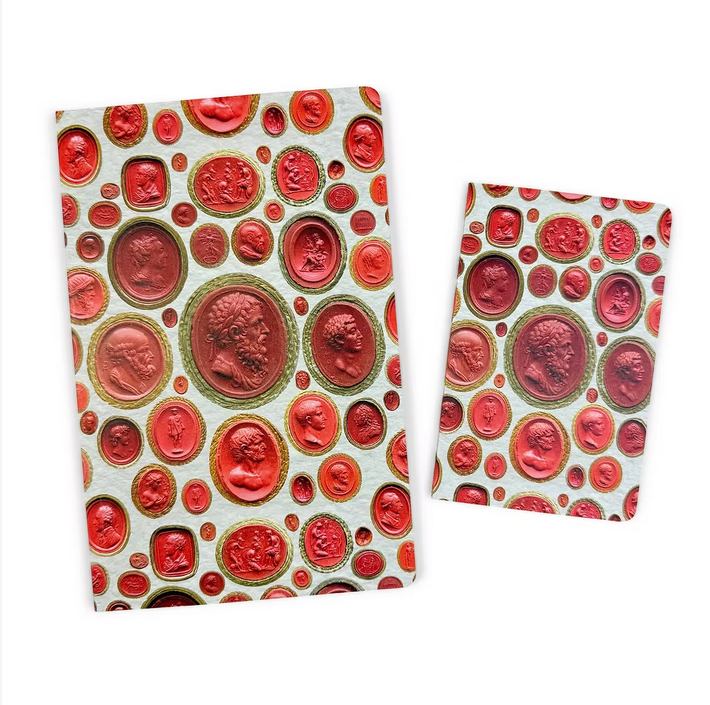 For many years, Erika has made a habit of marking her own notebooks with the Latin phrase, vade mecum, or, go with me. On the inside front covers of her notebooks, you'll find this phrase, along with a space to write your name and the date. You'll also notice an image of a single antique Paoletti intaglio: this is Ariadne, the Cretan princess who helped Theseus escape from the Minotaur's labyrinth. She thought she'd be an excellent friend to have along should you encounter a puzzle on your own writing or drawing journey.