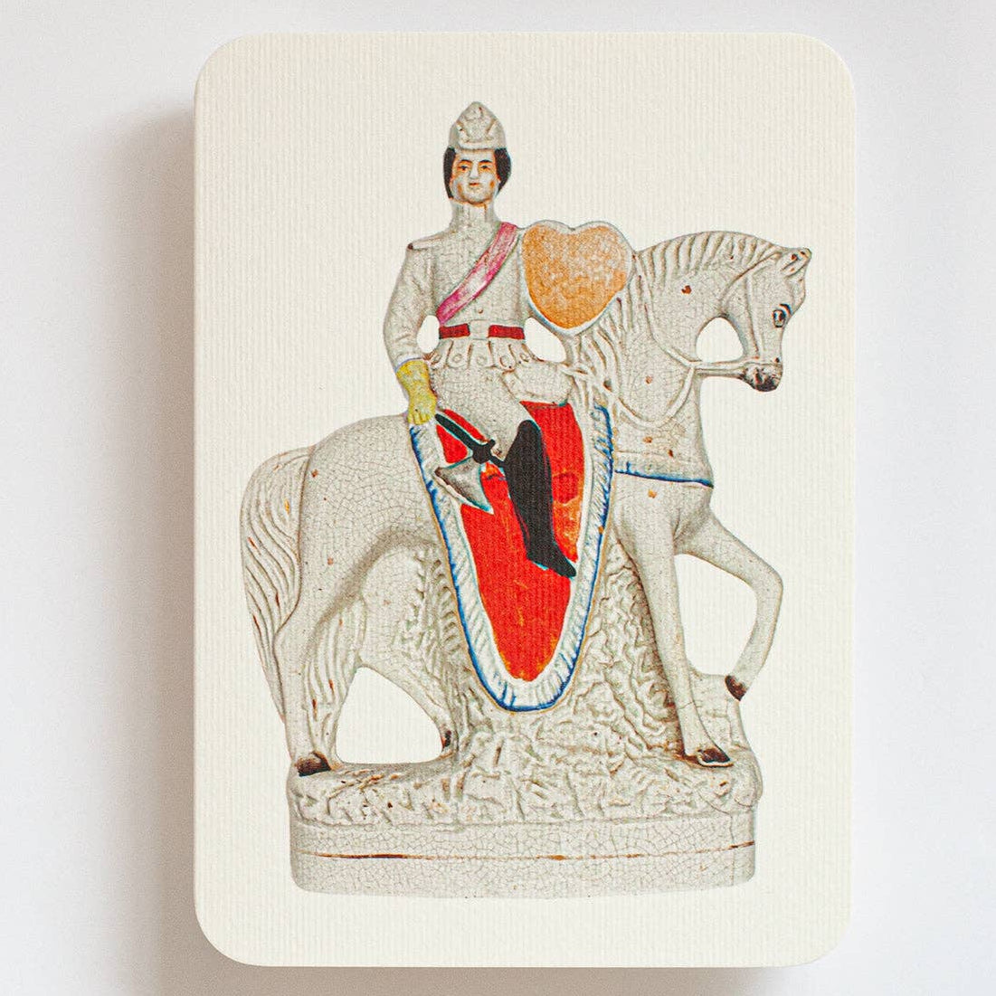 Inspired by antique Staffordshire mantlepiece figures, this card offers heritage charm and quiet wit.
