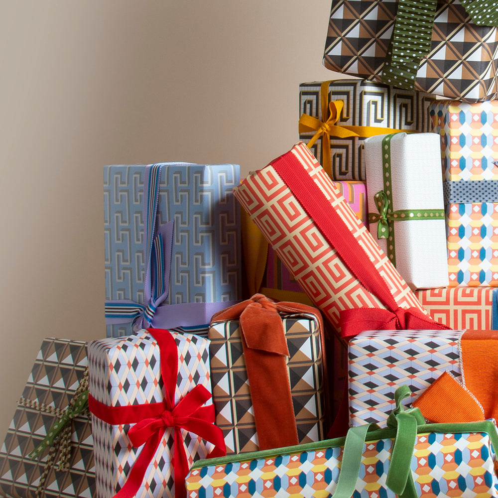 So inspired by the Opus Sectile (a practice dating back to antiquity) marble floors of St Mark’s Basilica in Venice, Bridie drew variations of her own. Unlike the Byzantines, she was fundamentally lacking in access to great quantities of precious marbles from the sacred and civic buildings of the Eastern Roman Empire, so she’s printed her collection out as a range of patterned papers instead!